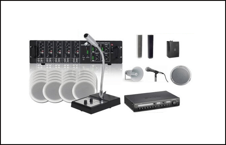 A public address system is an electronic amplification setup with an amplifier and loud speakers used in public areas to reinforce a given sound (example a person making a speech, prerecorded music, or a live musical performance so that the audience can hear it clearly. Analog as well as IP based institutions, healthcare and medical environments, airports, businesses and religious organisations.